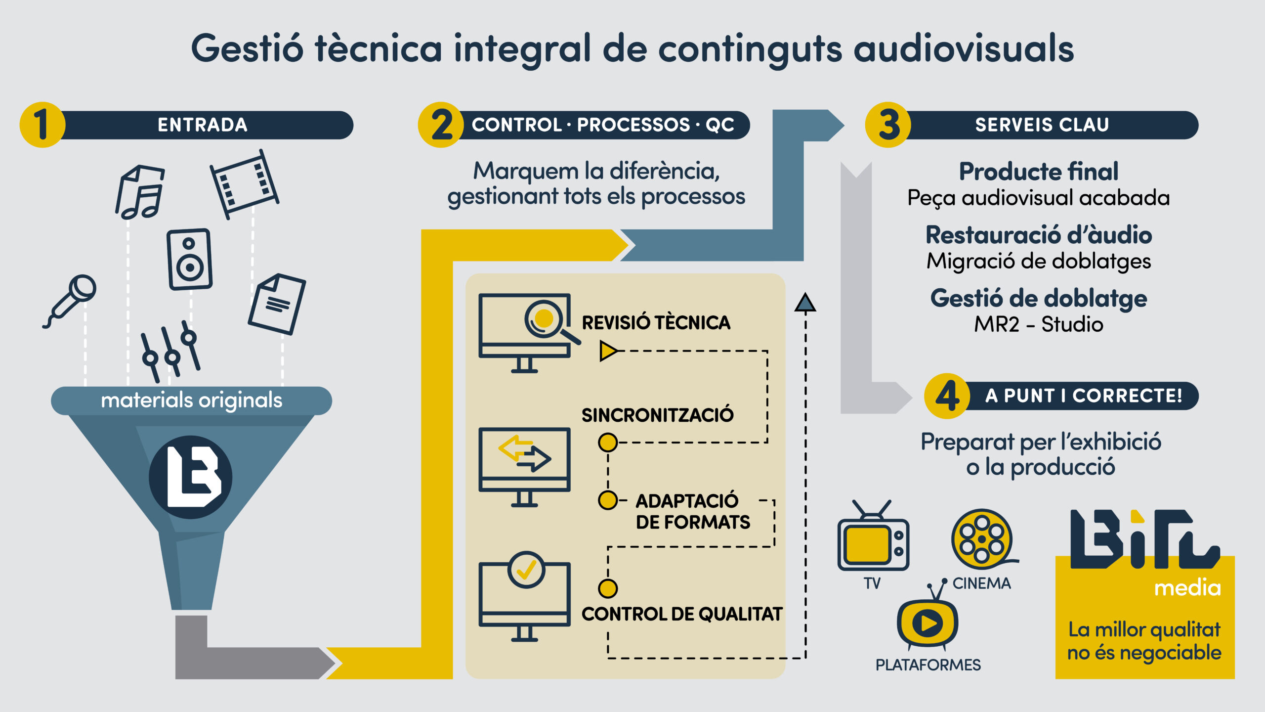 El nostre objectiu és consolidar-nos com una empresa audiovisual de referència, capaç d'integrar talent, tecnologia i noves línies de negoci que transformin la manera de crear, gestionar i experimentar continguts. El nostre objectiu és consolidar-nos com a empresa audiovisual de referència, capaç d'integrar talent, tecnologia i noves línies de negoci que transformin la manera de crear, gestionar i experimentar continguts.